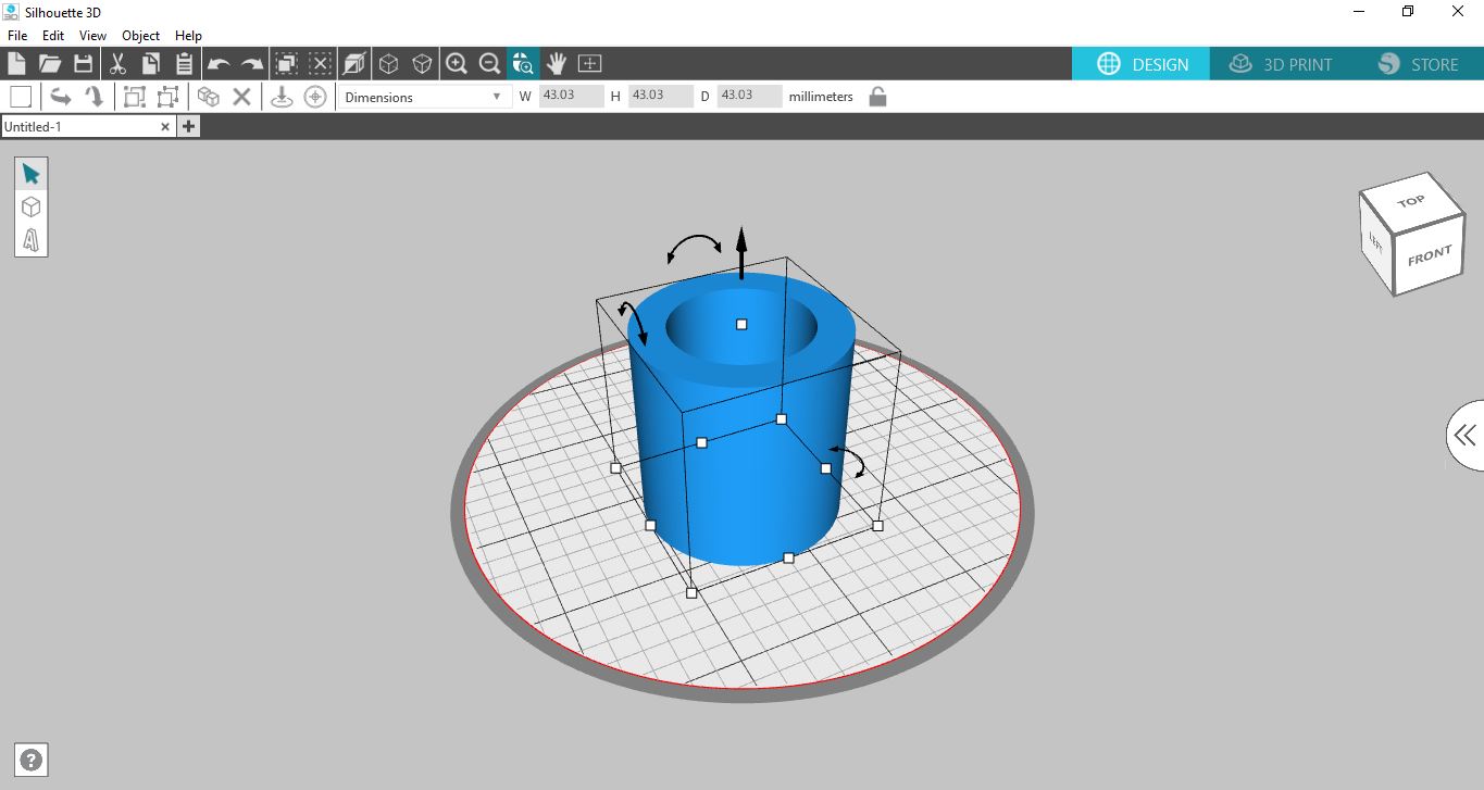 5- At this point you can adjust the size of the design. Click on the 3D print icon.